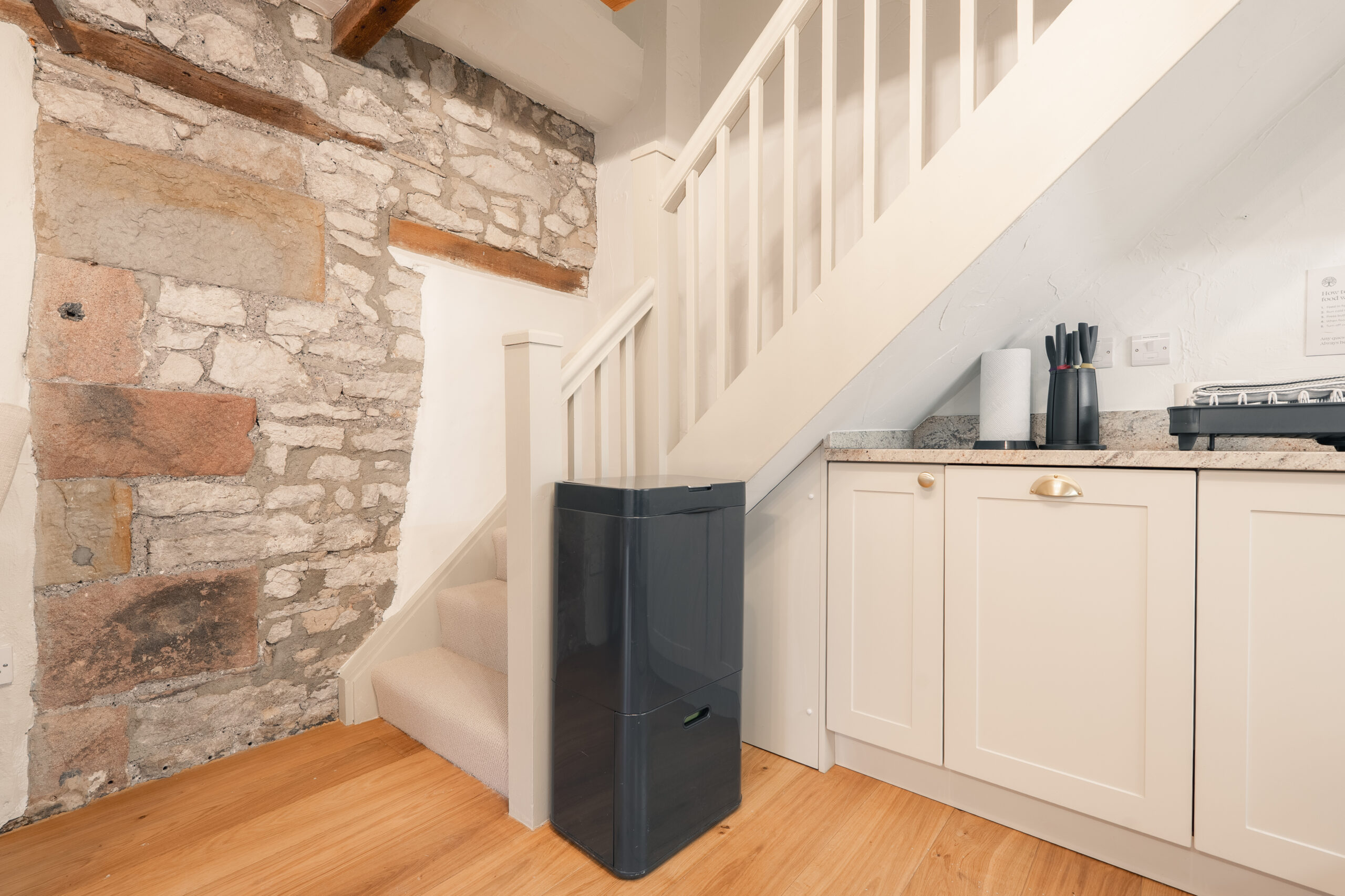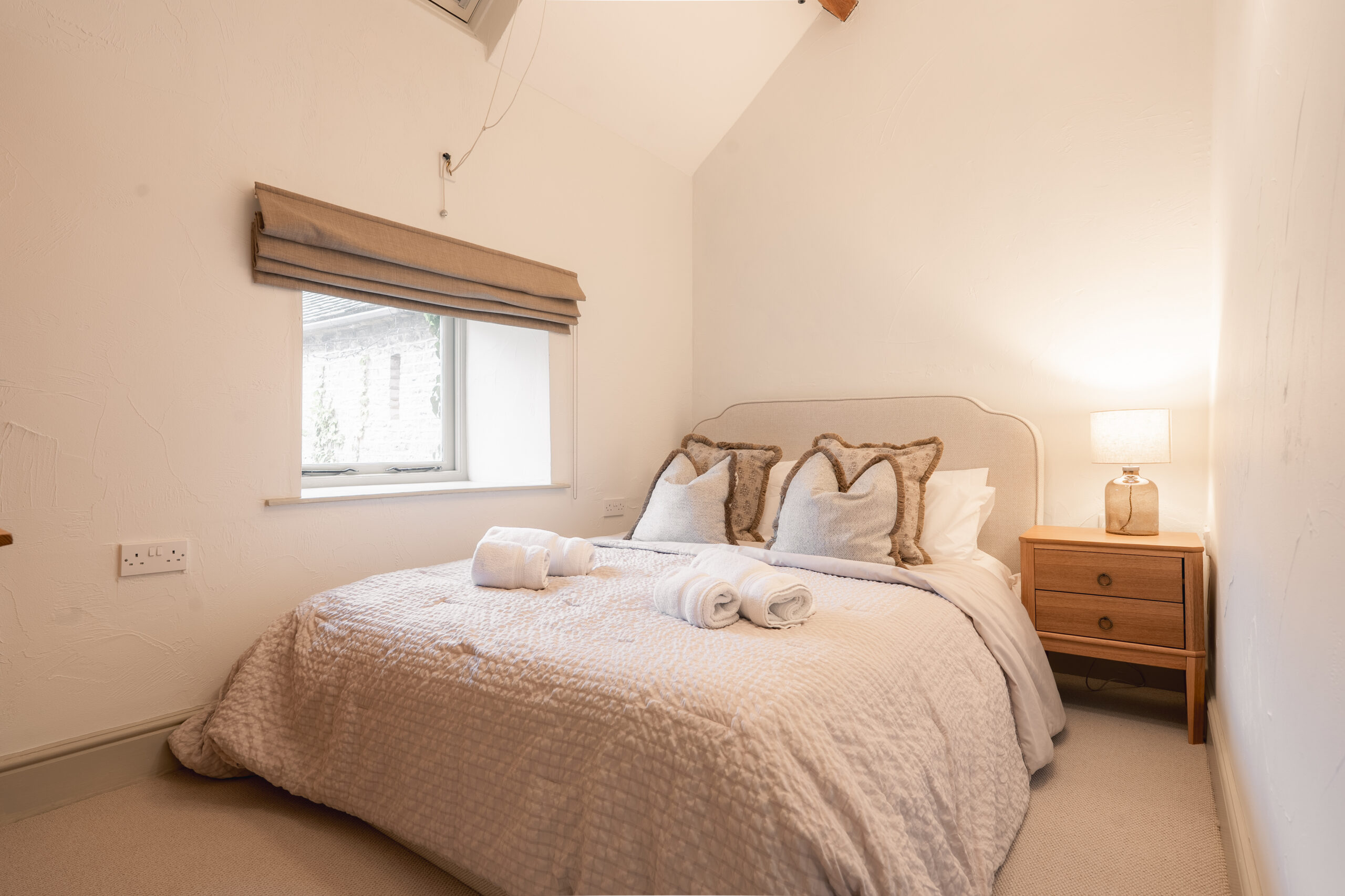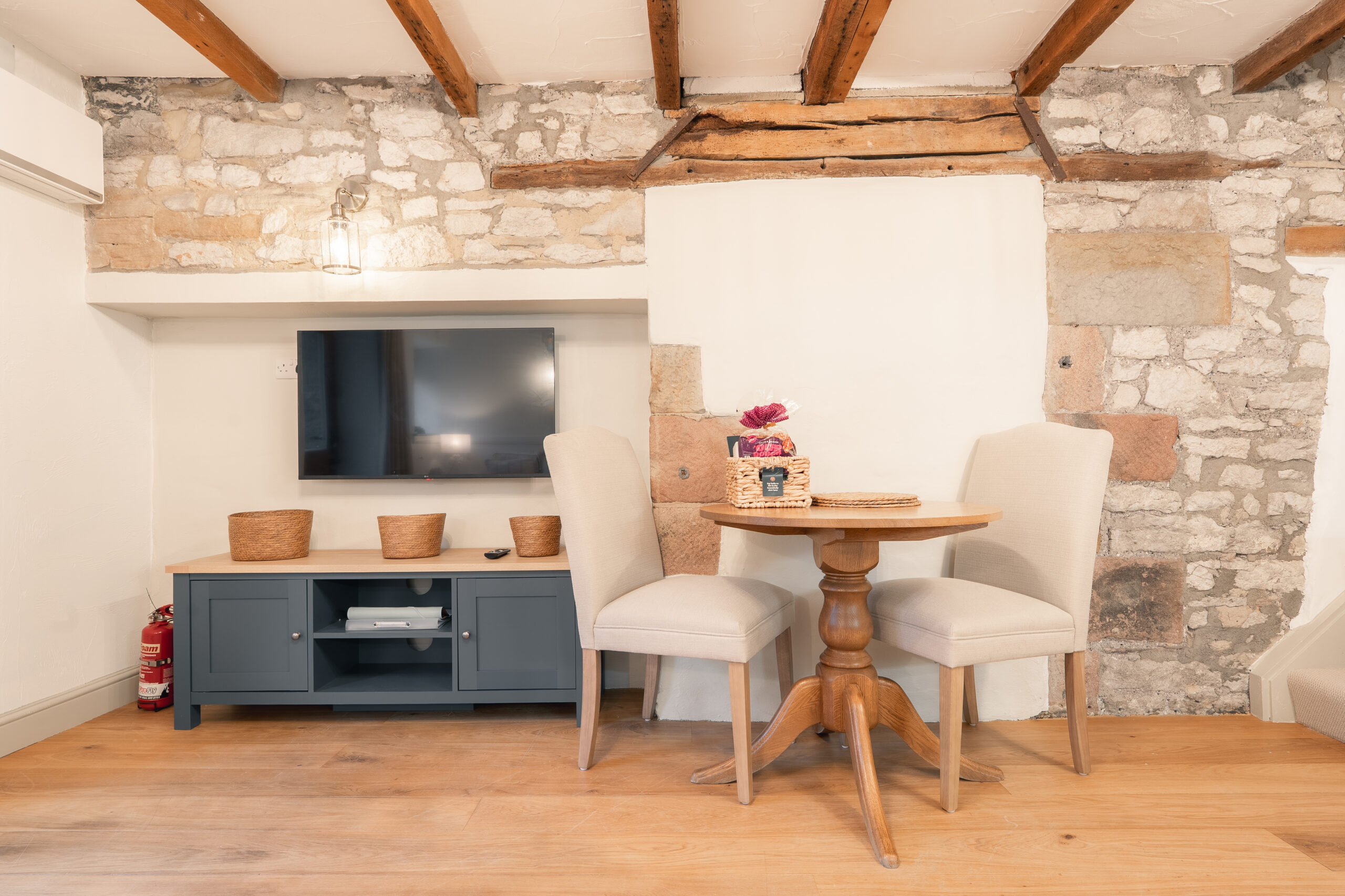 Dog-friendly Ollerenshaw Cottage is the perfect hideaway for two. Downstairs you’ll find a spacious open-plan living area with underfloor heating, along with a private enclosed patio which is perfect for relaxing with friends and family. The property features a stylish country kitchen with built-in appliances, quartz worktops, and a waste disposal system for added convenience. The dining table seats two, and there’s a Smart TV and Alexa to enjoy when you’re not out exploring the local hills.