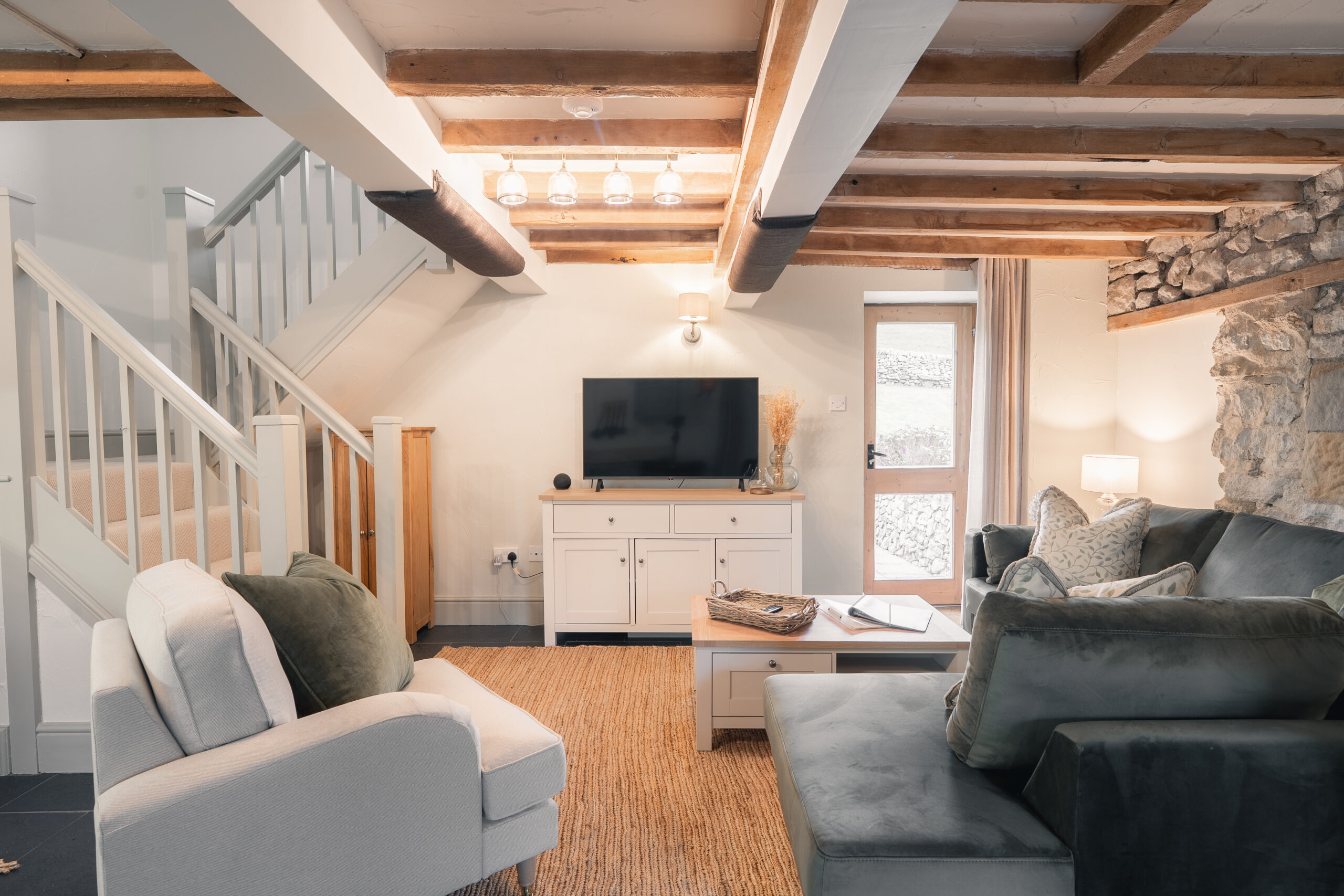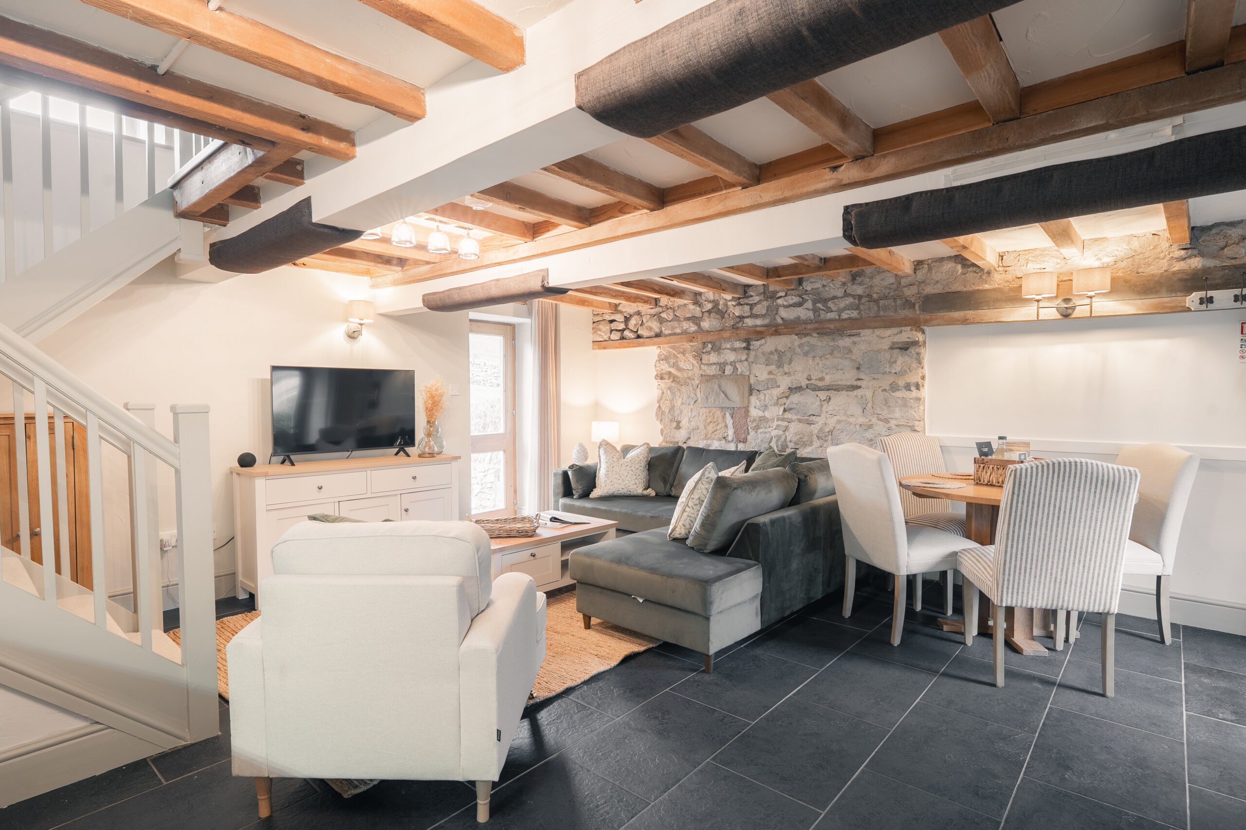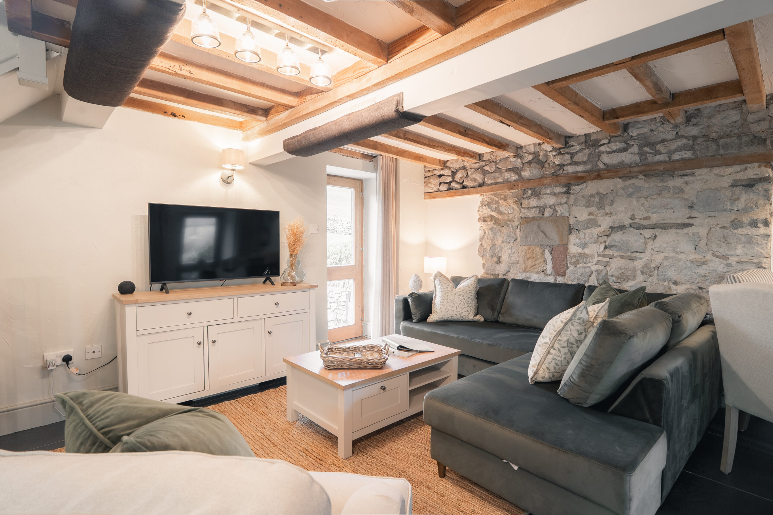 Upstairs, there are two bedrooms — a super-king bedroom and a twin bedroom — along with a well-proportioned bathroom featuring a walk-in shower. Elliott Cottage is one of ten cottages set within one of Derbyshire’s most breathtaking valleys. Ideally located close to both Buxton and Bakewell, the retreat offers superfast WiFi, an honesty shop stocked with treats, Voltshare electric vehicle charging, a children’s play area, laundry facilities, free electric bike hire, a games room and 12 acres of National Park for you to explore and enjoy.